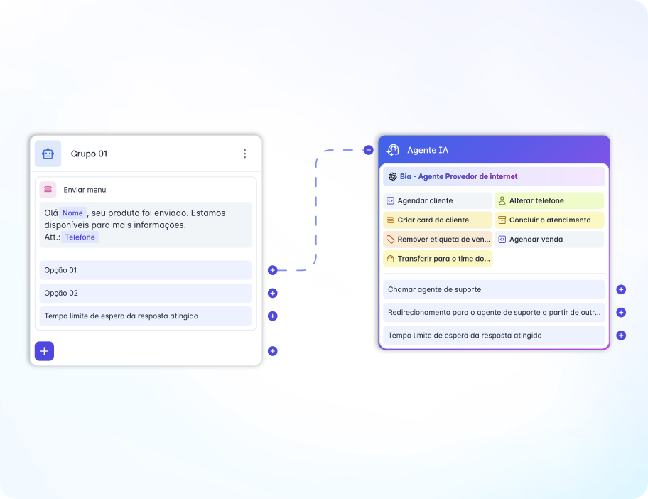 Crie fluxos inteligentes que economizam tempo e aumentam resultados. Use sequências automáticas, chatbots e agentes de IA para atender, qualificar e engajar clientes de forma personalizada.