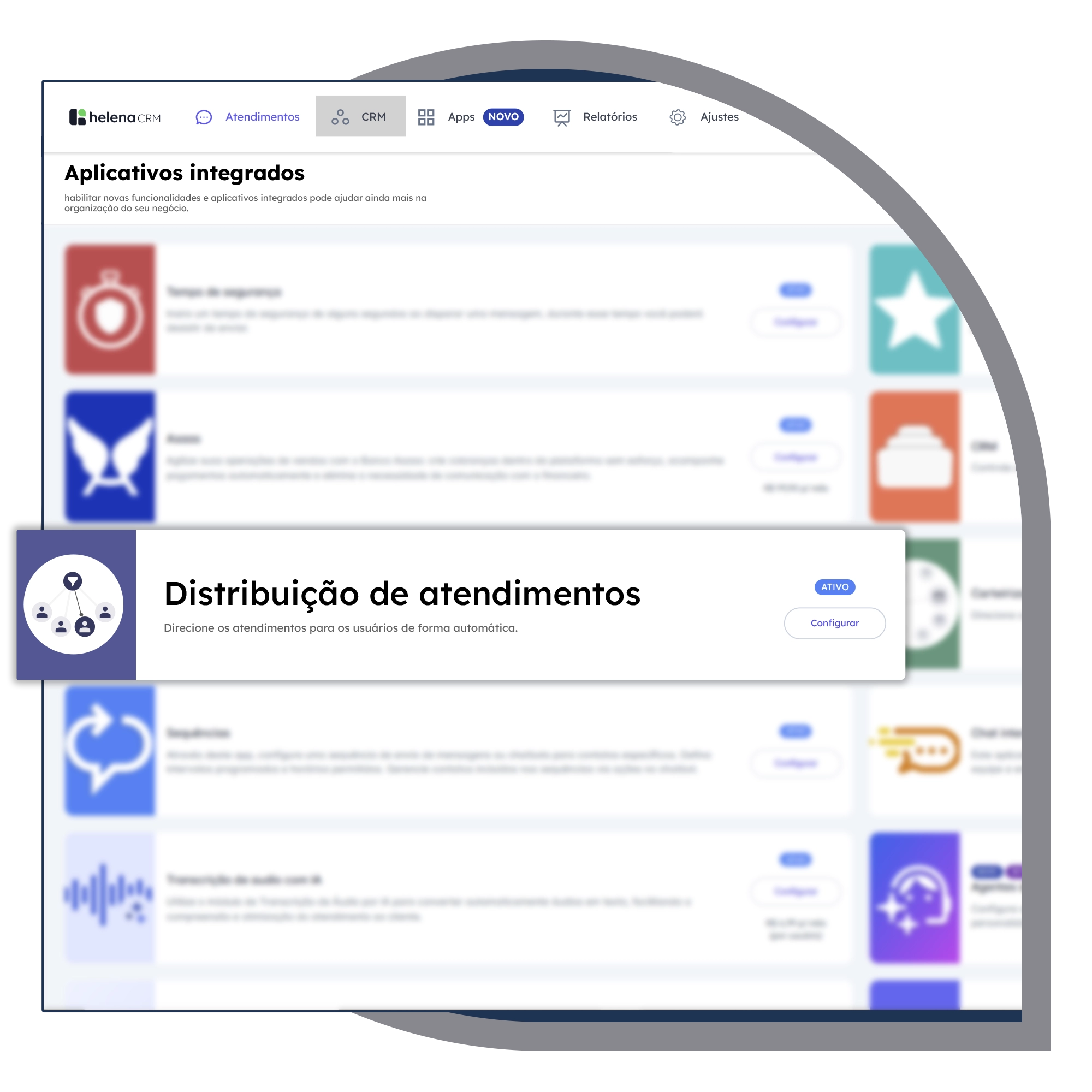 Com a Distribuição Automática e Transbordo da helenaCRM, sua equipe garante que nenhum cliente fique sem resposta e que os atendentes recebam as demandas organizadas.